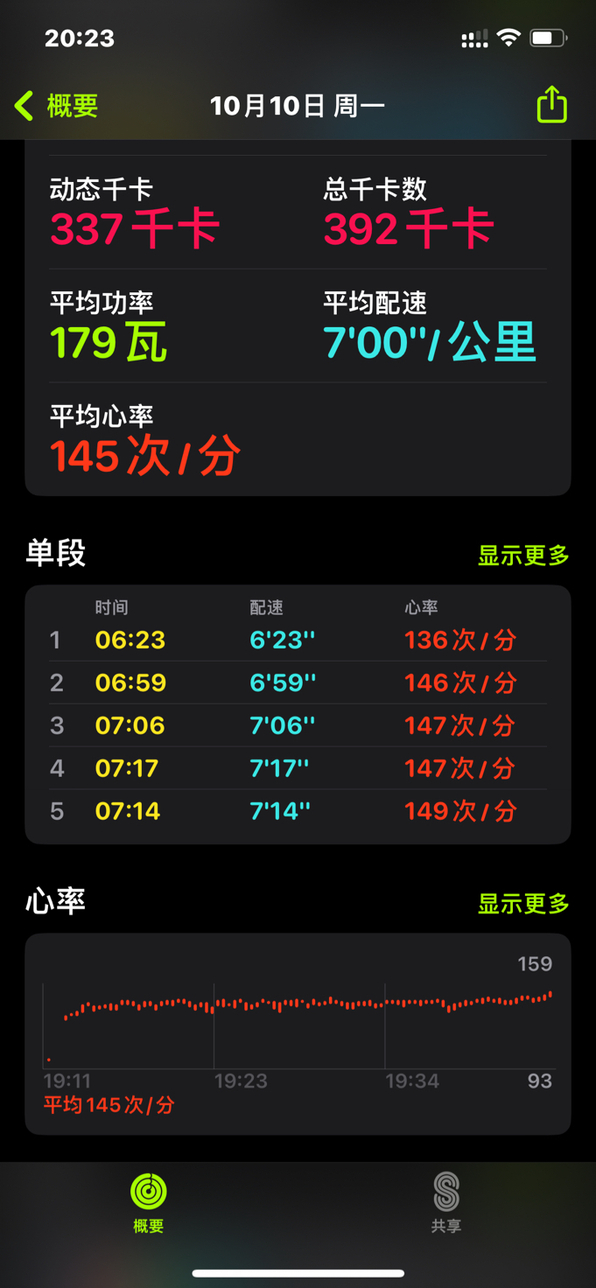终于控制节奏把平均心率压倒160以下了。